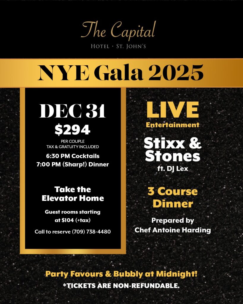At midnight, raise a glass of bubbly, enjoy party favours, and welcome the new year in true Capital fashion.