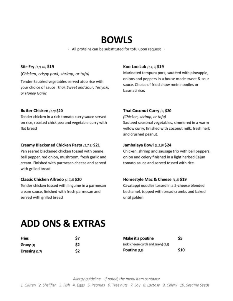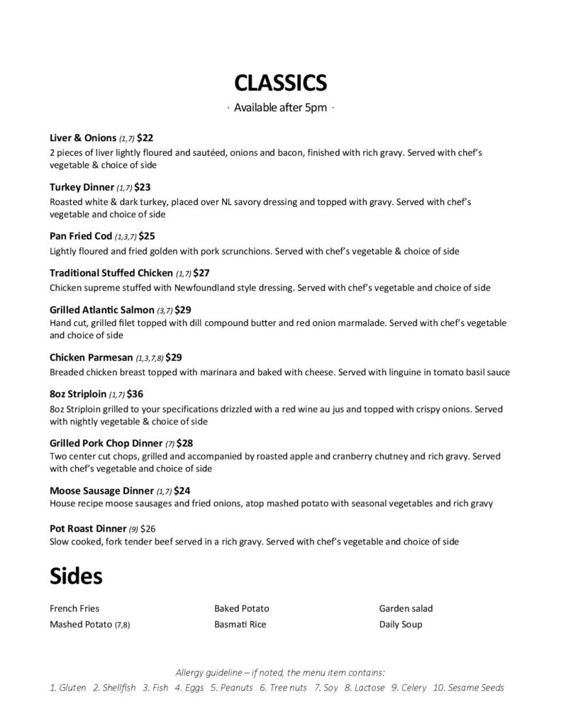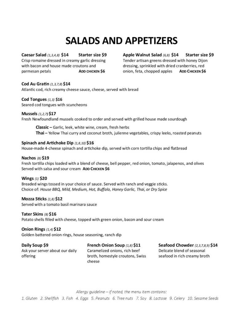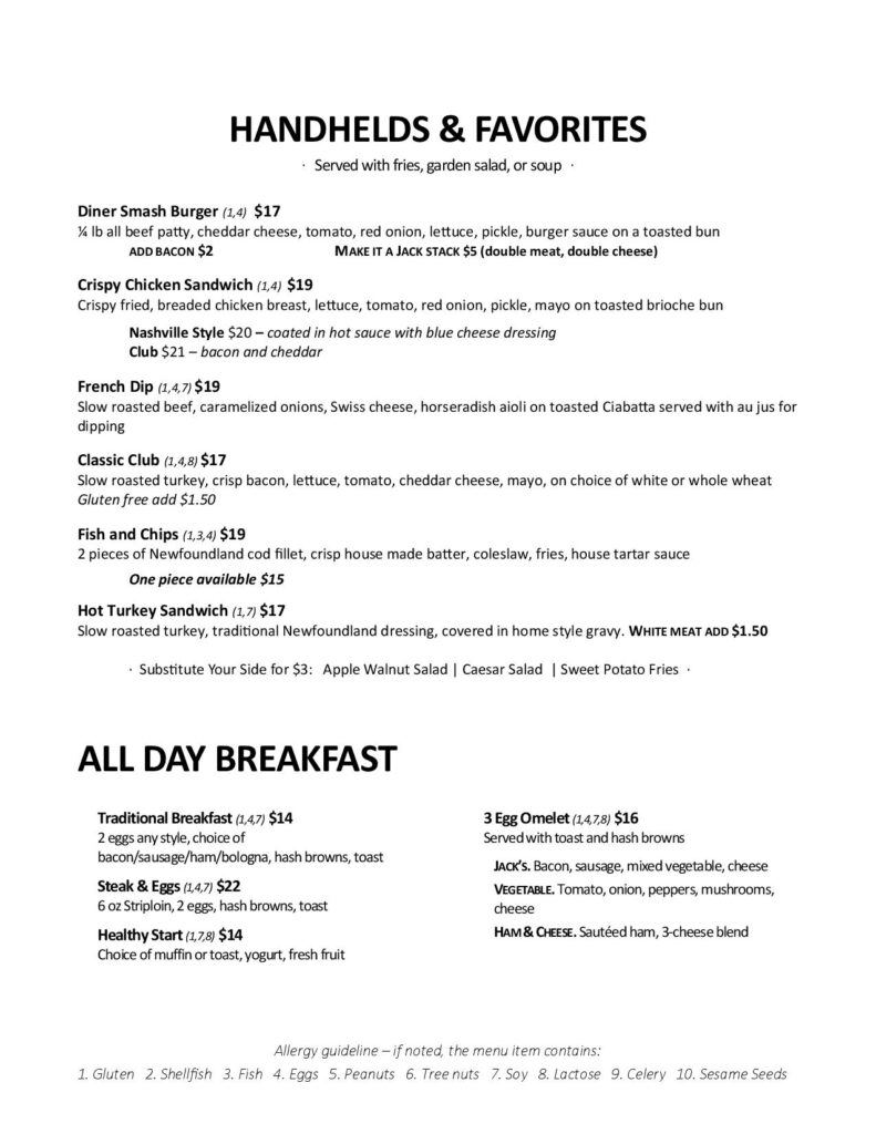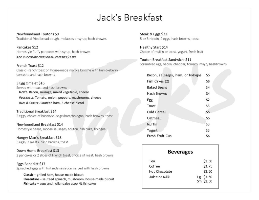 Jack’s Menu